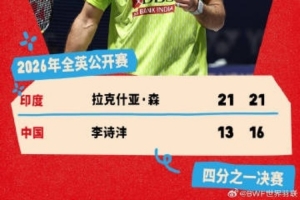 体育资讯3月7日讯 2026全英羽毛球公开赛男单1/4决赛,李诗沣0-2输球。
