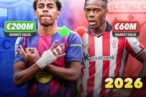 目前18岁的亚马尔德转身价已经高达2亿欧元,贵为当今足坛身价第一;而23岁的尼科在上升期却遭遇了身价下跌,目前的身价已经跌到了6000万欧元。