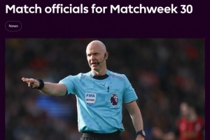 英超第30轮裁判