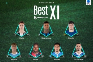 体育资讯3月11日讯 意甲第28轮战罢,联赛官方列出本轮最佳阵容,迈尼昂、伊尔迪兹、斯卡马卡在列。