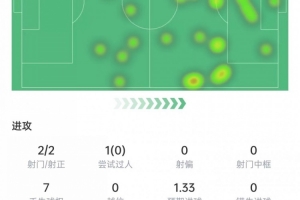贝尔纳尔本场数据:1次射门即破门,3次成功对抗,评分7.4分
