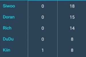 体育资讯3月14日讯 数据网站统计LCK杯单杀榜:Siwoo第一18,Doran第二15,Kiin八次。