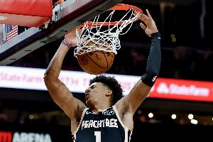 本场杰伦·约翰逊发挥出色,出战34分44秒,投篮20中10,三分5中2,罚球2中1,砍下23分10篮板12助攻的三双数据。
