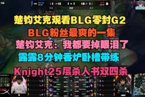 楚钧艾克看BLG零封G2,BLG粉丝最爽的一集:我都要掉眼泪了,露露8分钟香炉卧槽带练,Knight25层杀人书四杀。