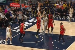 戈贝尔扣篮被科利尔凶狠犯规 要发作被兰德尔抱住&科利尔一级恶犯
