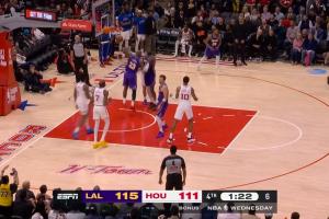 比赛时间走完东契奇投个半场 伊森从替补席助跑一把将球打飞场外