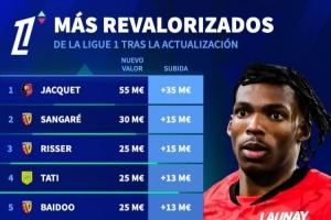 法甲球员身价上涨排名: