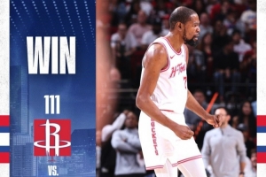 火箭官方发布本场比赛赢球海报,封面人物为杜兰特。