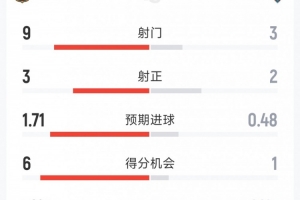 预期进球:1.71-0.48