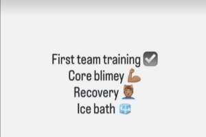 这位15岁小将写道:“一线队训练 ☑️核心力量训练 💪🏽恢复性练习 💆🏽♂️冰浴 🧊。”