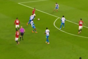 麦卡利斯特头球击中横梁,但这球也冲撞门将犯规在先