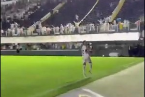 麦卡利斯特头球击中横梁,但这球也冲撞门将犯规在先