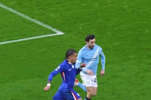 是点球吗?伊兰加禁区内与坎塞洛接触倒地,裁判没有表示