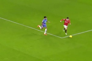 麦卡利斯特头球击中横梁,但这球也冲撞门将犯规在先